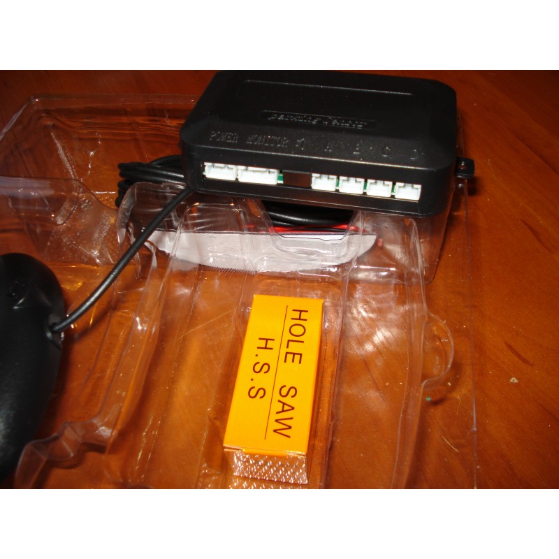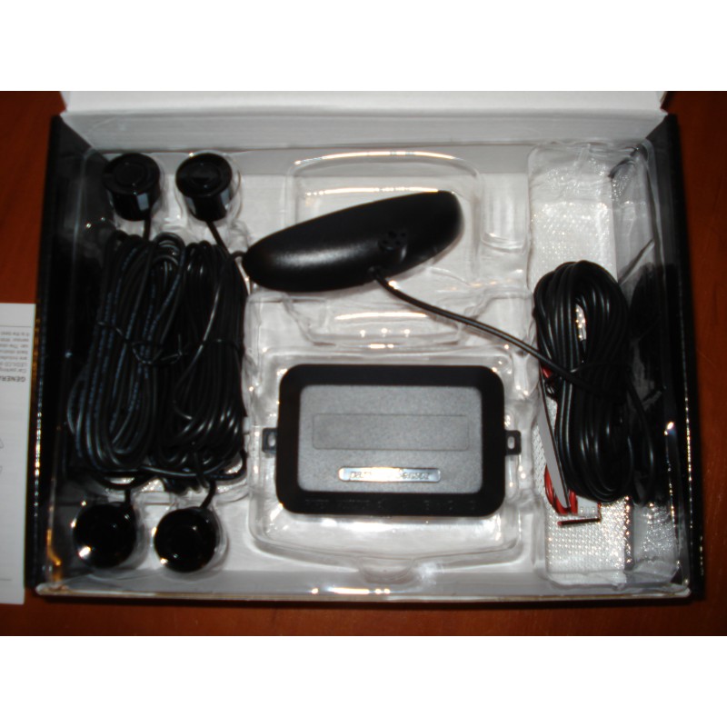 Парктроник состоит из 4 сенсорных датчика диаметром 18 мм, цветного фронтального табло индикатора (со встроенным звуковым зуммером), фрезы для установки и всего необходимого крепежа.